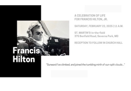A Memorial Service will be held at the USNA Main Chapel in Annapolis Maryland starting at 10:30AM on February 6, 2025. Internment ceremony with military honors will be held immediately following at the USNA Columbarium approximately 1/4 mile from the Chapel.A buffet style sit down luncheon will be held at 1200 at the Naval Academy Club approximately 1/4 mile from the Columbarium for all attendees.
