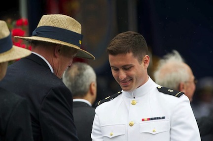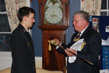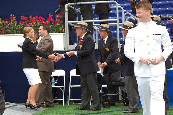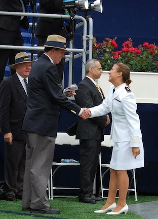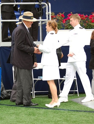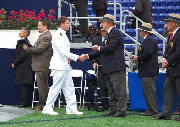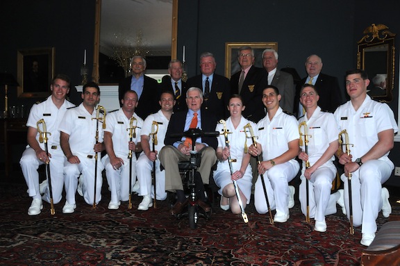 Roger Mehle presenting his sword to Mid'n Joe Rizzo, Class of 2013, on May 15