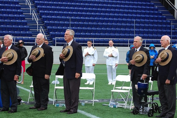 On the 24th of May the Class of 2013 threw their hats in the air in Navy-Marine Corps Memorial Stadium and departed for their new duty stations just as we did fifty years ago. It was a brisk and rainy day in Annapolis. The high temperature was 58 degrees with a wind blowing as a cold front passed through. The midshipmen sitting in their chairs for almost four hours were wet and chilled to the bone, but their high spirits were palpably high as were those of the thousands of underclass, parents, friends and significant others gathered in the stands.