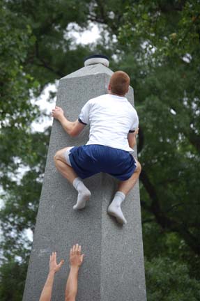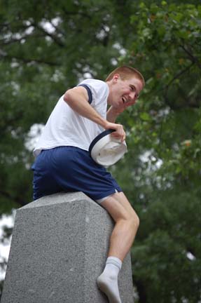 Upon conclusion of the Oath of Office, our class joined the 2013 plebes who had no family present at the Mexican Monument for some words of encouragement and use of cell phones to call home.