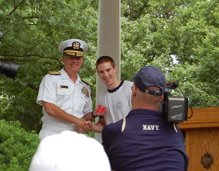 MIDN Haworth and I represent the "long and the short of it." He's 6'-7" and his football weight is 297 lbs. It would take 3 of me to exceed that! He's a fine young man; and is heading to Surface Warfare upon graduation. I got to know him because Beau's grandfather, Bill Haworth, taught with my wife Marion for many years in the Social Studies department at Bowie High School.