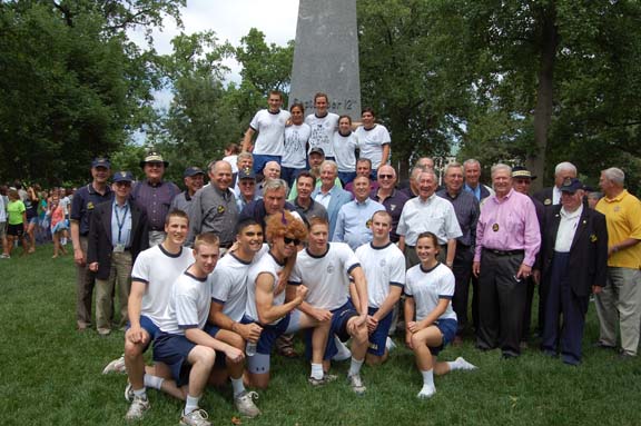 The Class of 1963 set records for attendance at the I Day picnic and Oath of Office ceremony on 1 July 2009. There were 63 classmates and spouses at the 1030-1230 picnic on Worden Field. At 1615, we had 73 classmates in Memorial Hall to honor our 29 classmates who died on active duty. Volunteers from our class pronounced they were present for duty for our fallen classmates. We all professed we were present for duty earlier after trying to look sharp in a military formation. The Marine Drill Team has no worry!