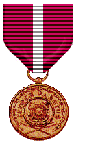 Authorized on May 18, 1921, and awarded on a selective basis to enlisted personnel of the Coast Guard and Coast Guard Reserve for periods of three year's above-average continuous service. Recipients must have been recommended by their commanding officer for proficiency in rating, sobriety, obedience, industry, courage and neatness throughout the period of service. The original medal was about 20 percent larger than the present award, and had a top suspension bar with the words, "U.S. Coast Guard." Additional awards were indicated by a wide clasp with the name of the ship or station engraved upon it, but this has been replaced with a star for additional awards.