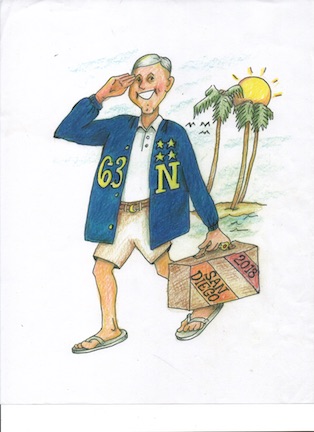 An enthusiastic group of San Diego area classmates is in the preliminary stages of planning. We have tentatively set the reunion location in a downtown hotel on San Diego Bay convenient to many attractions and restaurants. We intend to follow the general four-day format of the Annapolis reunions, with possibly Company get-togethers Thursday night, a heavy hors d'oeuvres cocktail party Friday night (similar to the one held at the 45th), the tailgate and game on Saturday, and possibly a brunch and/or memorial service on Sunday. The hotel threshold will be a three-night minimum stay, with favorable rates extended from three days before to three days after the reunion.