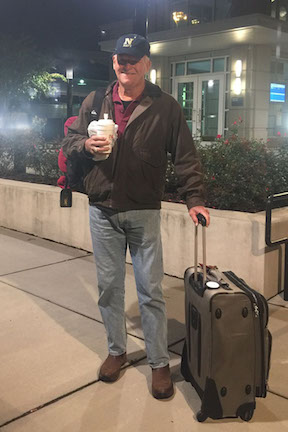 I got off to a great start on the early/only train out of Norfolk on October 30. On board, I spotted a friendly face, our classmate Jim Metcalfe enroute to BWI airport. We chatted amiably before being severely chastised for being audible in the "quiet coach." I had a lovely dinner in Louisville, CO, with 13th Companymate Hank and Penny Dalton, stayed overnight, and had a grand tour of Colorado Springs with another 13th Companymate, Dave and Margie Frost. I used the Shipmate listing of alumni chapters to connect with helpful grads and joined two in a Kansas City pub for the Navy-SMU game. In Houston, it only took me five bus connections Saturday morning to attend that game.