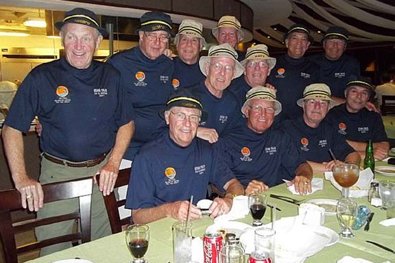 Shown left to right in the picture are (sitting) Len Eaton, Jim Thornton, Steve Leisge, and Mike Krause; (middle row) Sherwood Zimmerman and Steve Hoy; (back row) Vern VonSydow, Dick Ortwein, Bob Maier, Harry Hirsch, Mike Bonsignore, and Mike Rubel; (there in spirit but hospitalized) JJ Hogan, III.