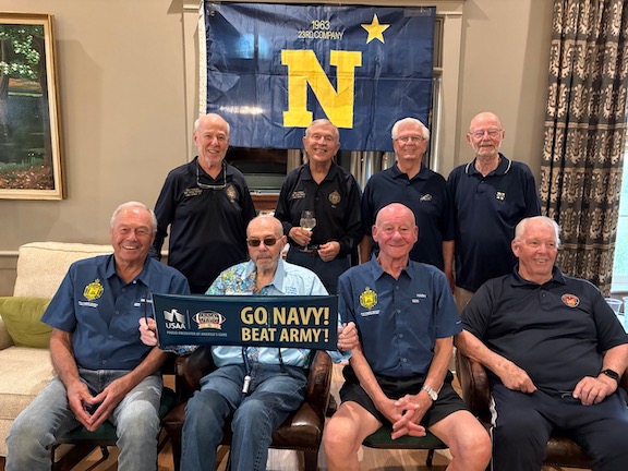 We wanted a minimum of five classmates to create a group to allow on-board privileges, and we got seven! We really missed the others who were interested but unable to participate, so we carried the 4th Company guidon to represent us all.