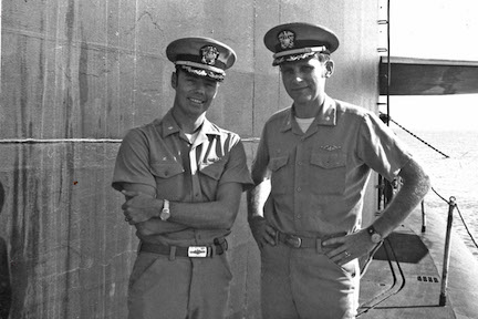 The death of Larry Marsh and the note from Mal Wright reminded me that they had an unusual professional connection. In the late 1970's they were opposite crew commanding officers of USS WILL ROGERS (SSBN 659) - Larry of the Gold crew and Mal of the Blue crew. Here's a photo from November 1977 with Mal on the left and Larry to the right.