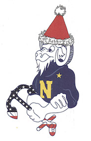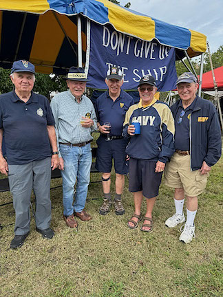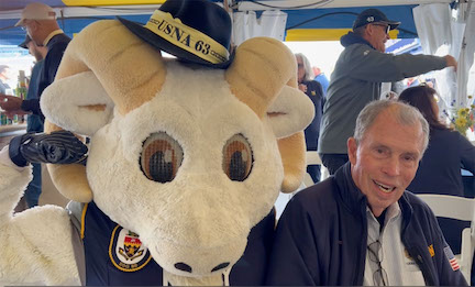 Classmates attending Navy football games in Annapolis this fall enjoyed tailgating before watching a Navy victory in every contest. Jim Ring sent this photo of himself with the Navy Spirit goat.