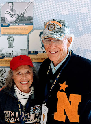 I saw George again at the Lacrosse Hall of Fame in the Navy-Marine Corps Stadium. I took this picture of him and Betsye Lhuillier, his significant other, in front of his picture there.