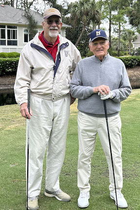 I went up from my home in St. Simons Island, GA, to Hilton Head to stay with Doug Tozour and play in a charity golf tournament on April 22. The tournament was to benefit the Lowcountry Foundation for Wounded Military Heroes. This Foundation has raised, over 14 years, nearly two million dollars. I learned that Doug had generously purchased a service dog and had it trained for a wounded warrior through this foundation. He and I were in the senior foursome and we held our own, scoring an even par for the scramble against "flatbellies." It was great to spend time with Doug and talk about our USNA and Marine Corps days.