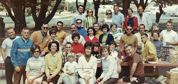 Our column last month included a few old photos of groups of our classmates. One picture showed this large group at a picnic but the where and when were unknown. Since then, several people have confirmed that the place was NPGS Monterey. The date remains uncertain but was likely 1967-69.