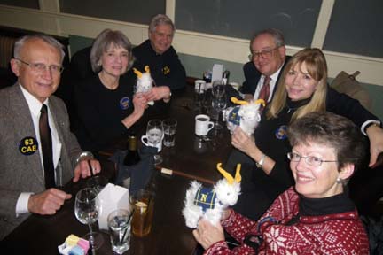 Sixteen of our classmates and their ladies and families gathered at the On The Border Mexican Grill in Escondido to cheer on Navy in this year's contest against a valiant Army team. In attendance were Bob and Sue Easton and their daughter Laura, Jim Fontana, Janet Gushue and her son Brian, Charlie and Nancy Helsper, Steve and Karen Hoy, Bill and Dottie Hughes, Ted and Kay Krohne, Dave and Pattie Meyers, John and Betty Middleton, Win and Sally Orgera, Jay Roberts, John and Terri Ryan, Grant Telfer, Vern and Gail VonSydow, Roy and Vickie Warren, Rich and Betty Ray Wilson. Sickness kept two of our regulars, Karl Kozak and JJ Hogan, from attending.