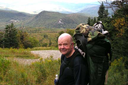 At a trail shelter, I met two local young men from a near-by town in Vermont. They offered me a shot of Jack Daniels. Talking with them I discovered they were roughing it for a couple of days before they had to report to Paris Island for boot camp. I gave them a couple of USMC History questions to which they promptly gave correct answers. I had to chuckle when they I told them my background because their demeanor changed, the Jack Daniels bottle disappeared, and I was "Sir'ed" the rest of the evening. I felt very proud of our next generation of Marines.On the trail I met an elderly lady hobbling toward me. She had braces on her legs and ski poles in her hands. She told me of her medical problems and that both of her knees replaced. She didn't carry a pack. Her husband drove a camper and would arrange to meet up with her each night. I was impressed with her determination and fortitude. For the next several miles I thanked God for my good health. Also, along the trail, I kept a mental note of god's other gifts to include; wild turkeys, one moose, four chipmunks, beautiful birds, some insects, plants, trees, water, sunshine, fog, mud, rocks, lots of green, red and golden leaves.
