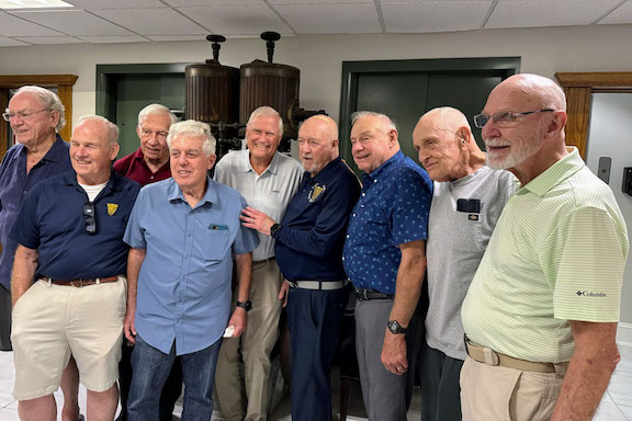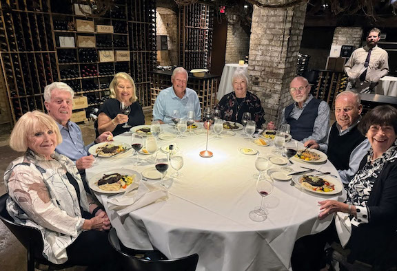 From October 21st through 28th, members of the 8th Company (Terrible 10th Company survivors) held a get together in San Antonio, TX, celebrating our 21st Mini-reunion. The weather was perfect, and the location was ideal. We stayed at the historic downtown Gibbs Hotel just steps from the Alamo and the River Walk The hotel is a staunch supporter of people in the military and provided a complimentary meeting room for our group. We had a wonderful stay in San Antonio. We had a group ride on the Old Town Trolley for a tour that guides visitors through the city's history and culture, stopping at notable and unique neighborhoods and places. The next day, the group went on a tour of the San Antonio Missions, which comprise five historic Spanish colonial missions that together form a UNESCO World Heritage Site. During free time many of the group walked across the street to visit the Alamo. On Friday evening, the group enjoyed an exceptional dinner in the Wine Cellar at Boudro's Texas Bistro. We were surrounded by wine crates and barrels, wine tasting tables, and floor-to-ceiling wine racks stocked with more than 7,000 bottles. We enjoyed the time together and sharing old stories. The stories get better every year. Here are three photos from our time together. In the first are Mike Spear, Matt Small, Bill Earner, Earl Buck, Dave Bingemann, Bernie Patterson, Al Breen, Richard Kell, and John Boley. Not shown are Dick and Marylyn Augur, who had to leave early.