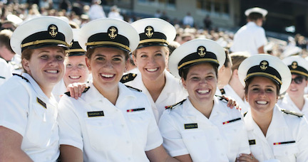 The first Naval Academy class to include women was the Class of 1980, whose members arrived at the Academy in the summer of the nation's bicentennial year. The 50th anniversary of Women at USNA will be observed in several events through 2026. Let's get a jump on the schedule by recognizing now the eight Class of 1963 daughters who followed their fathers into the Academy. Here's a hearty BZ to Anne-Lynne Chapman '90 (Austin), Emily Cox '10 (Lanny), Kelly Duncan '90 (Steve), Ellen Gardner '89 (Joel), Julie Jordan '07 (Jerry), Susan Koehn '89 (Jim), Jennifer Lasswell '92 (Jim), and Erica Miles '87 (Jeff).