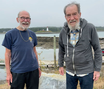 In August, Anne and I hosted Seventeenth Companymate Jerry Jordan and his wife, Judy, for a week in Winter Harbor and the surrounding area. While Jerry and I certainly had differences ( He was a varsity swimmer and I was sub squad, he was a submariner and I was a surface skimmer), we had a great time. We enjoyed sunny days (that the state refers to as drought) for their entire visit. This picture of Jerry and me was made near the Canadian border across from Campobello Island,