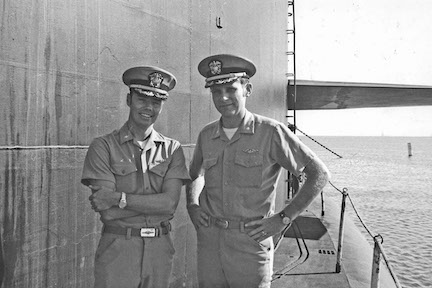 I remembered publishing a photo of Mal and Larry in Shipmate many years ago. After a little research, I found it. Shown here in the November 1977 photo are Mal (C.O. of the BLUE crew) and Larry (C.O. of the GOLD crew).