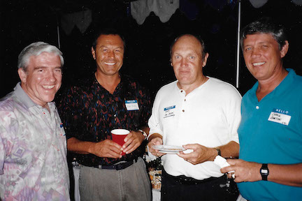 From the September 1993 version of June Week West, a large Navy spirit event in San Diego, came this picture of our classmates J.J. Hogan, Mike Rubel, Vern Von Sydow, and Craig Barton.